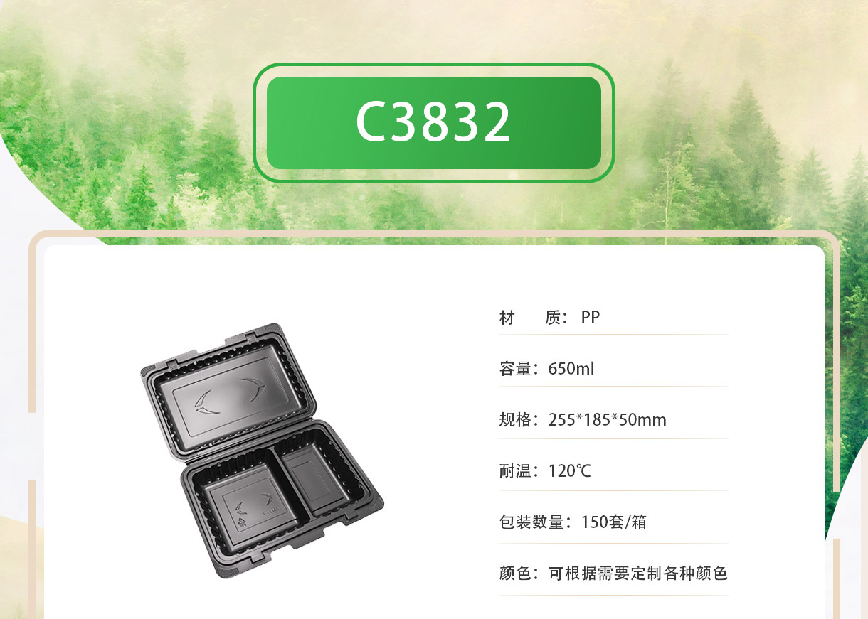 一次性pp飯盒帶蓋封口黑色方形兩格格快餐盒