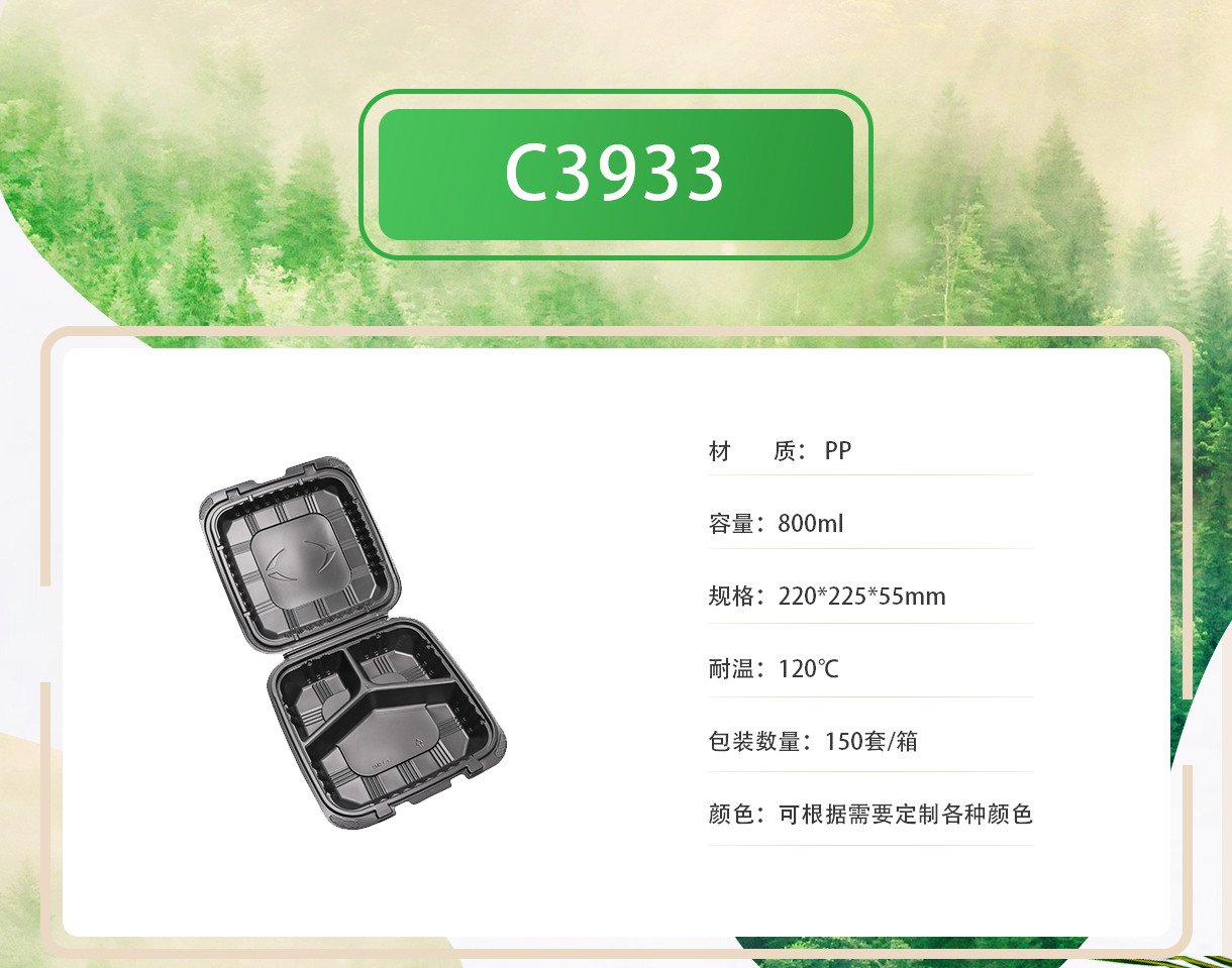 一次性pp飯盒帶蓋封口黑色方形三格格快餐盒