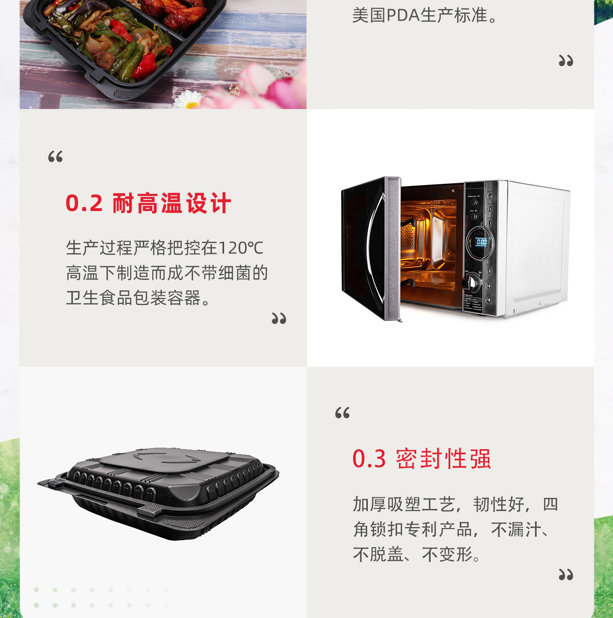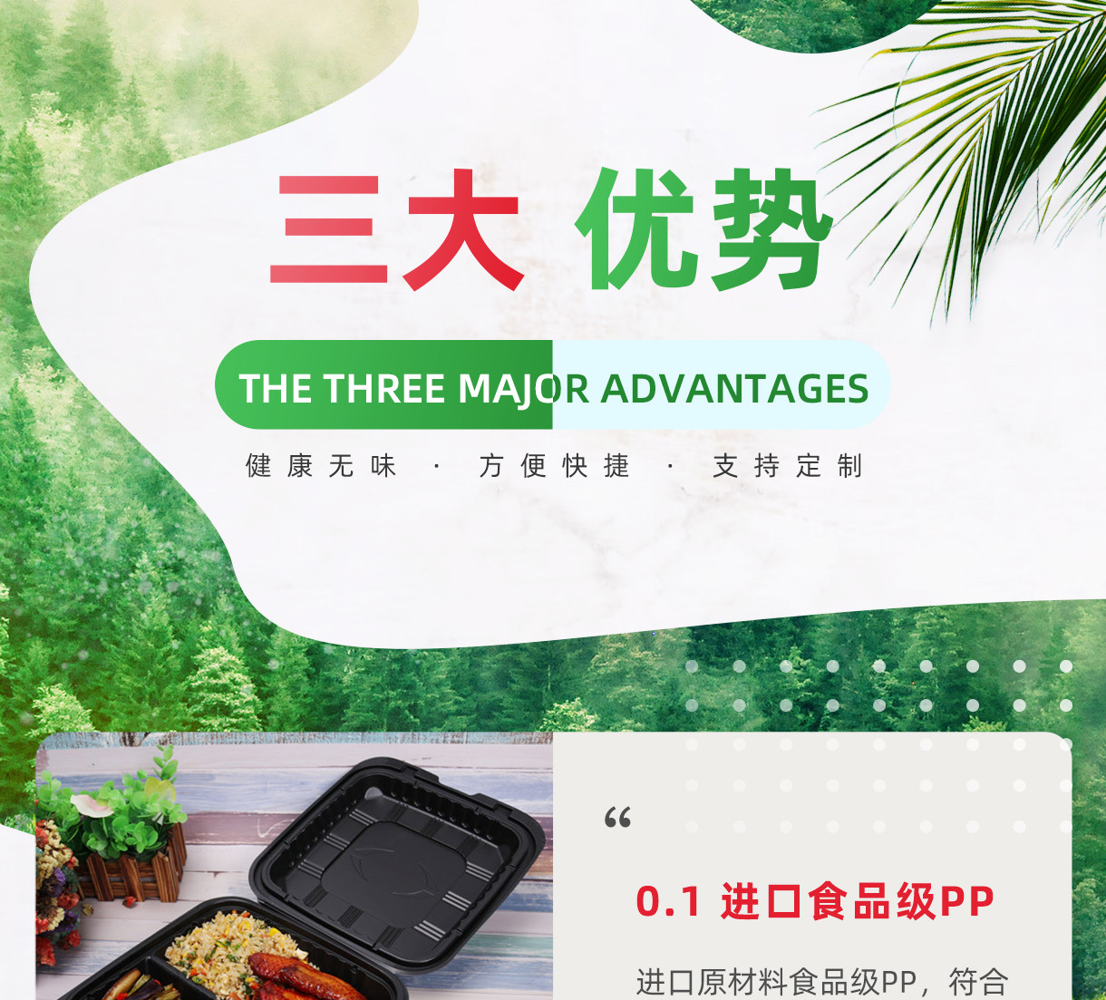 一次性pp飯盒帶蓋封口黑色方形兩格格快餐盒